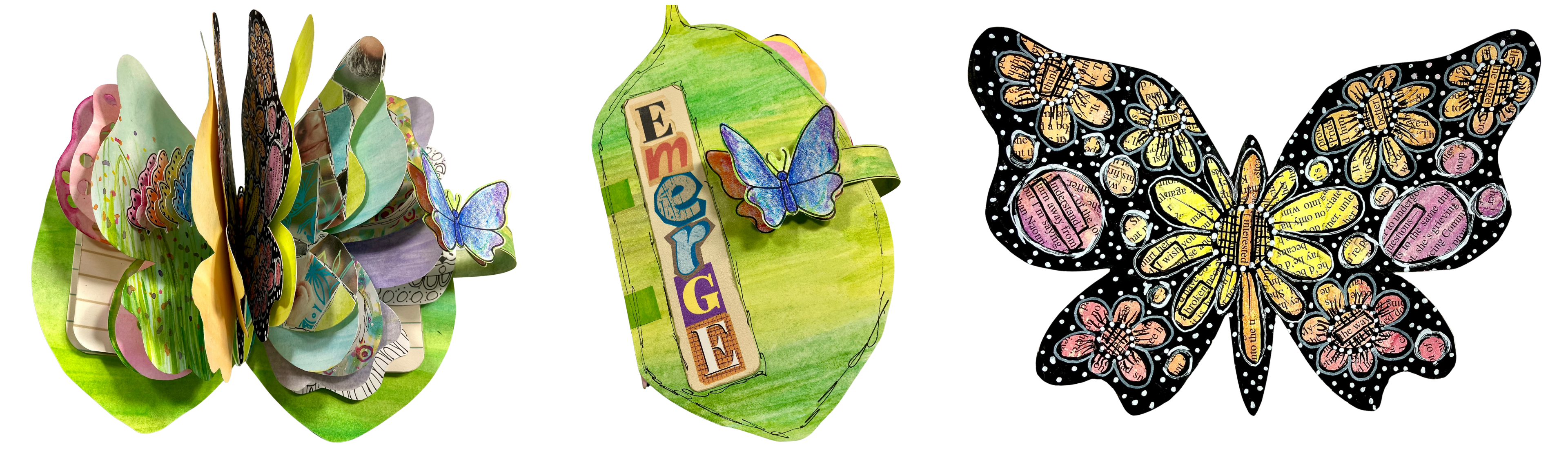Let your imagination take flight in Emerge, a playful, process-driven class where transformation is part of the art. You’ll design a one-of-a-kind journal with a chrysalis-inspired cover and butterfly-shaped pages you can keep expanding—add as many butterflies as you like as your creative journey unfolds!